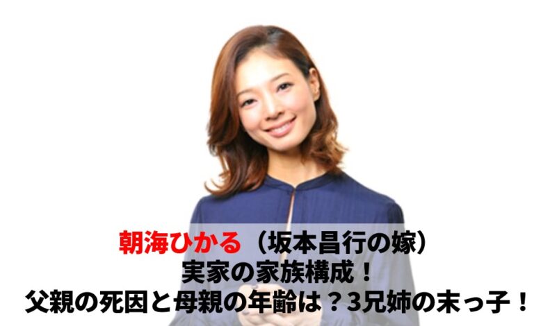 朝海ひかる(坂本昌行の嫁)の実家の家族構成!父親の死因と母親の年齢は?3兄姉の末っ子!まとめ